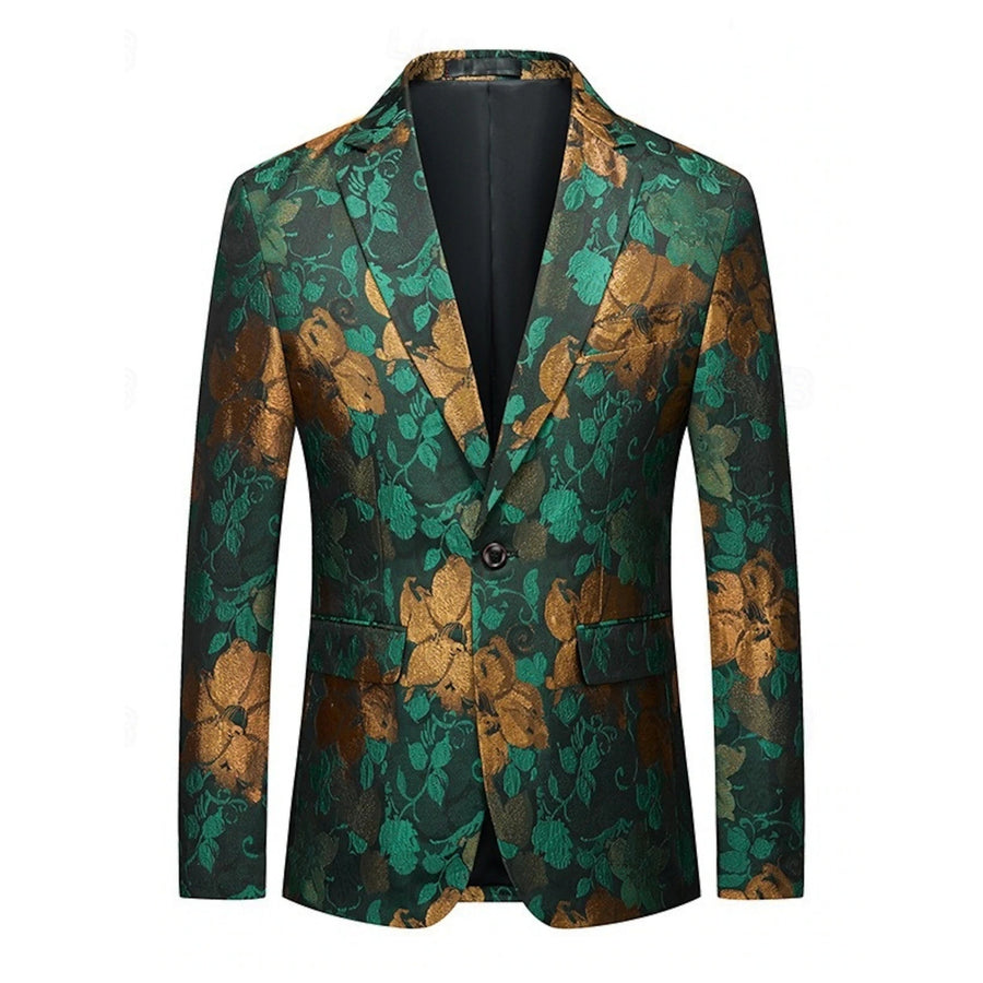 MON3121006 Costumes de Mariage 2 Pièces pour Hommes, Coupe Ajustée, Simple Boutonnage, Imprimé Floral, Blazer