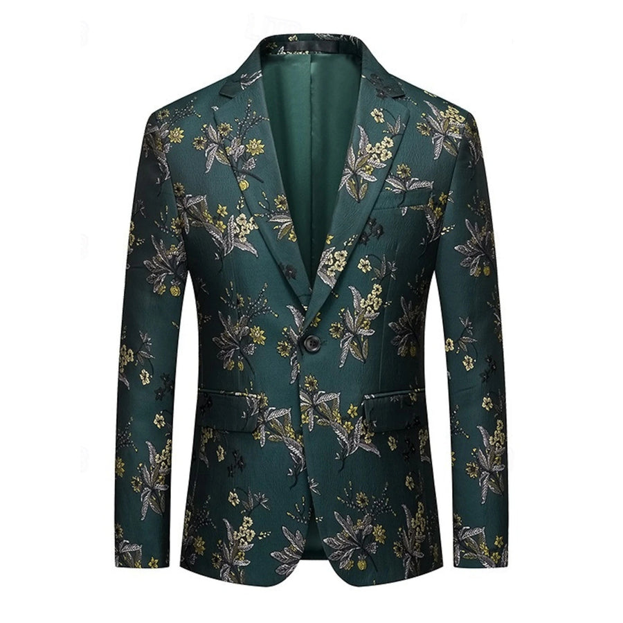 MON3121007 Costumes de Mariage Pour Hommes, Coupe Ajustée, Simple Boutonnage, Imprimé Floral, Blazer