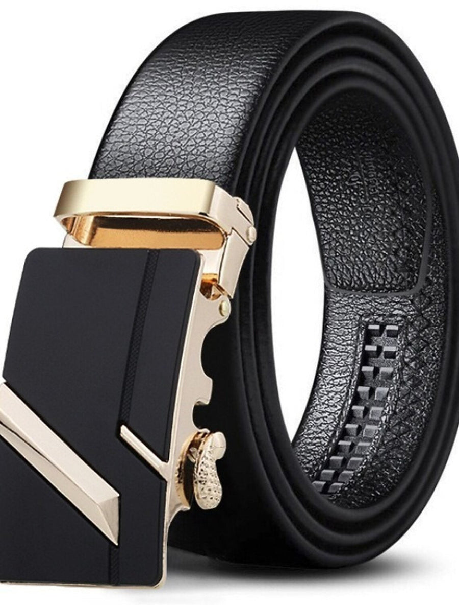 MON612062 Ceinture à Cliquet En Cuir Pu Noir Pour Homme, à Porter Au Quotidien