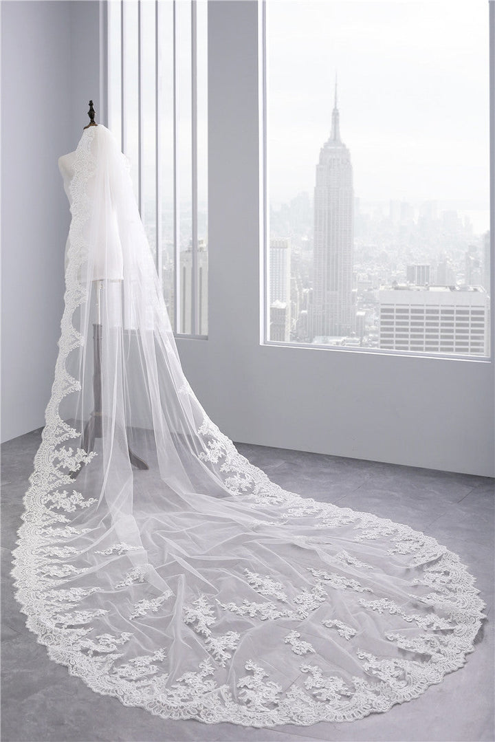 MON941129 Voile de Mariée en Dentelle à Un Niveau avec Appliques