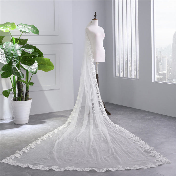 MON941133 Voile de Mariée en Dentelle à Un Niveau avec Appliques