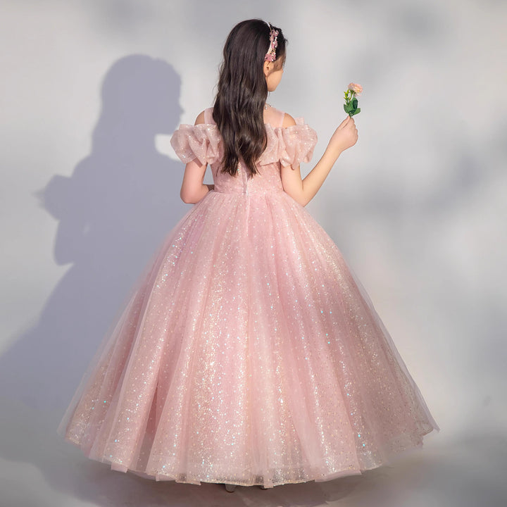 MON11112715 Robe de Soirée pour Fille avec Broderies, Longueur Au Sol, Coupe A-Line/Princesse, Épaules Dénudées