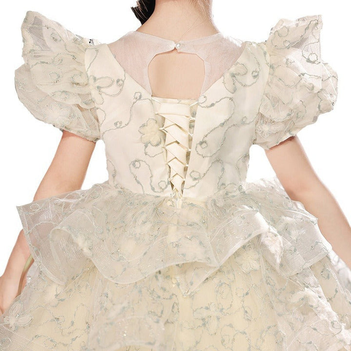 Robe de Soirée A-Line/Princess à Manches Courtes pour Fille avec Appliques en Strass