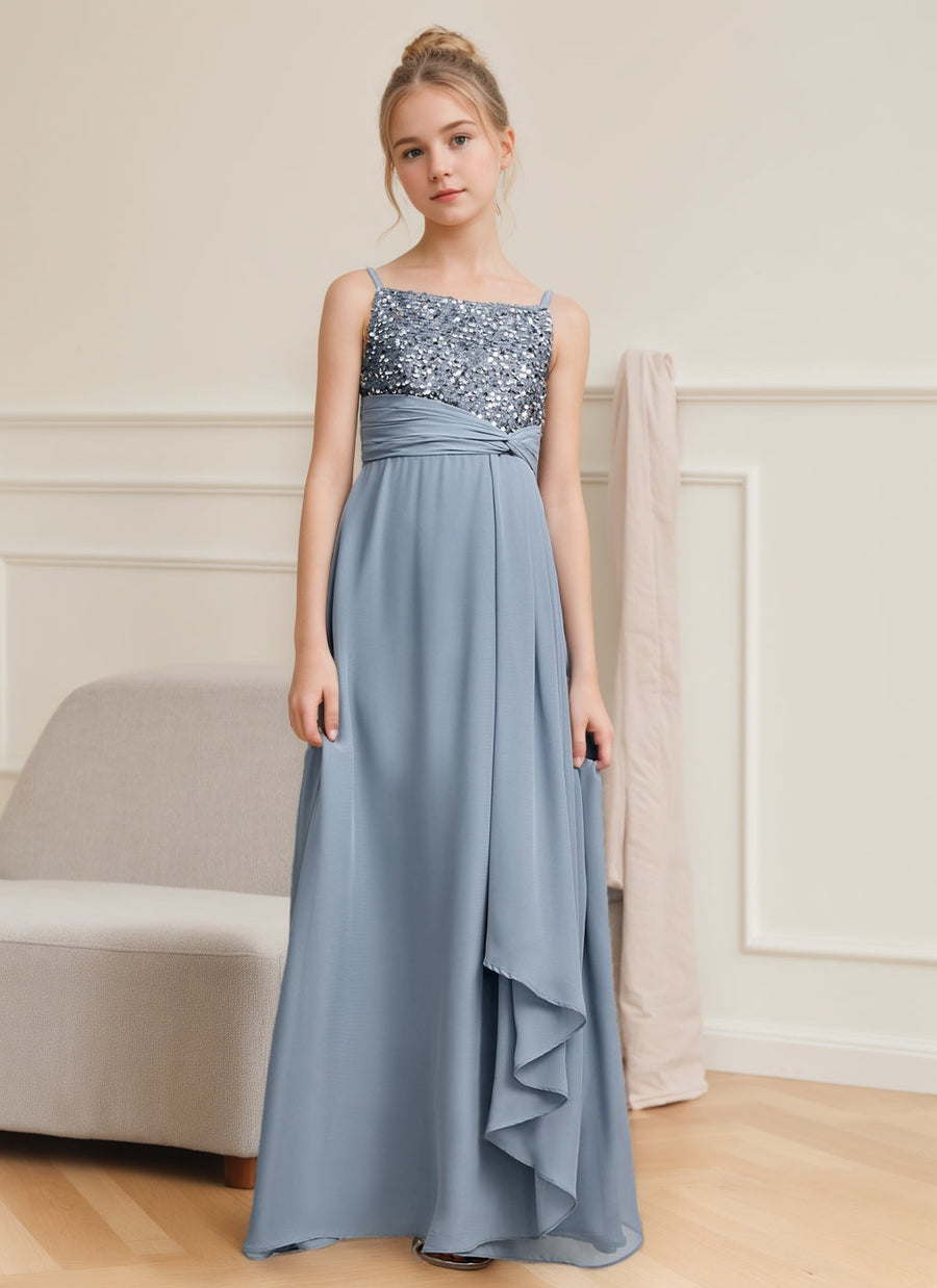 MON21110027 Robe de Demoiselle D'Honneur Junior à Bretelles Spaghetti A-Line/Princess avec Paillettes