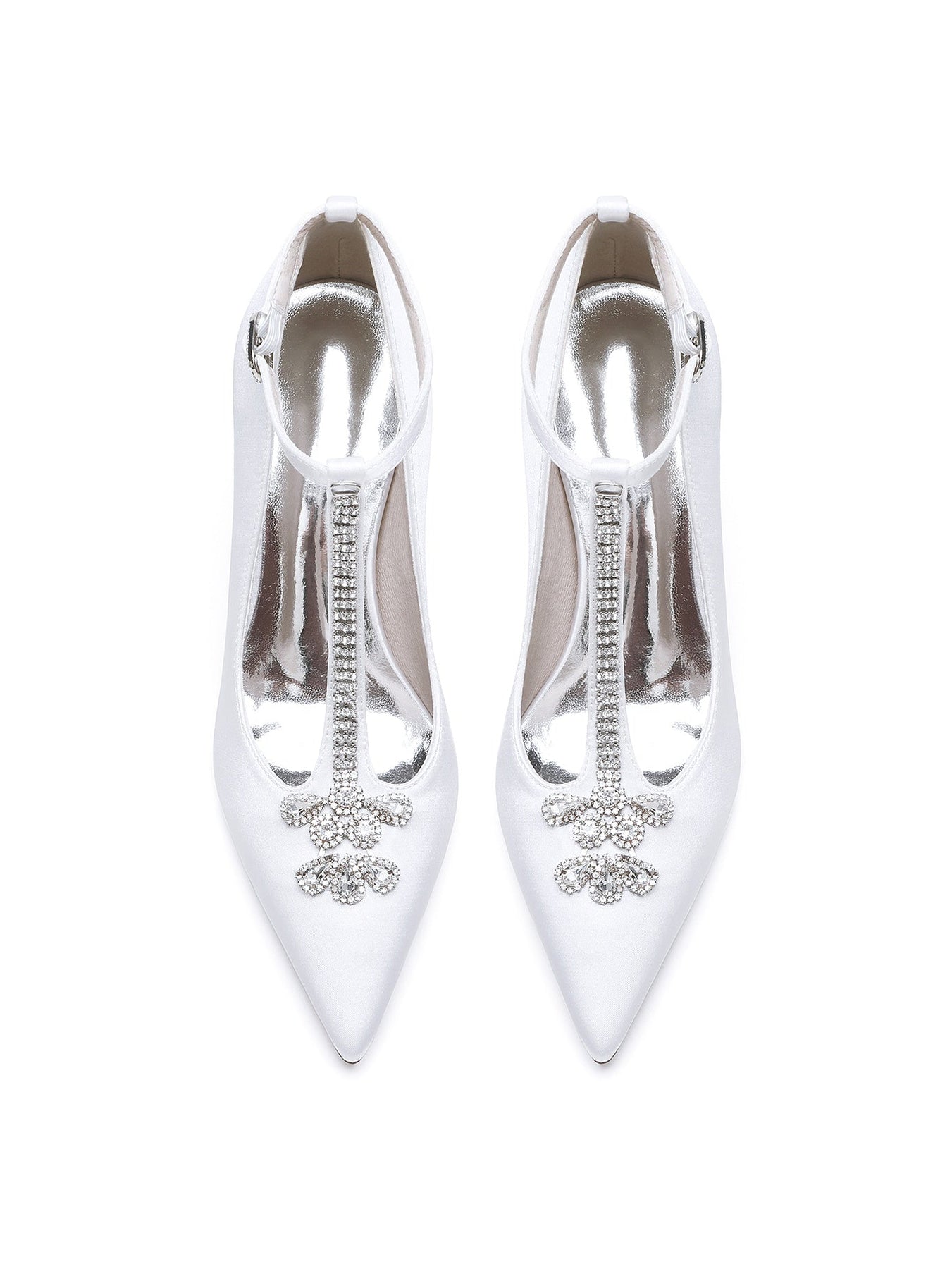 Chaussures de Mariage pour Femmes, Chaussures de Demoiselle D'Honneur à Talon Aiguille et Bout Pointu avec Strass