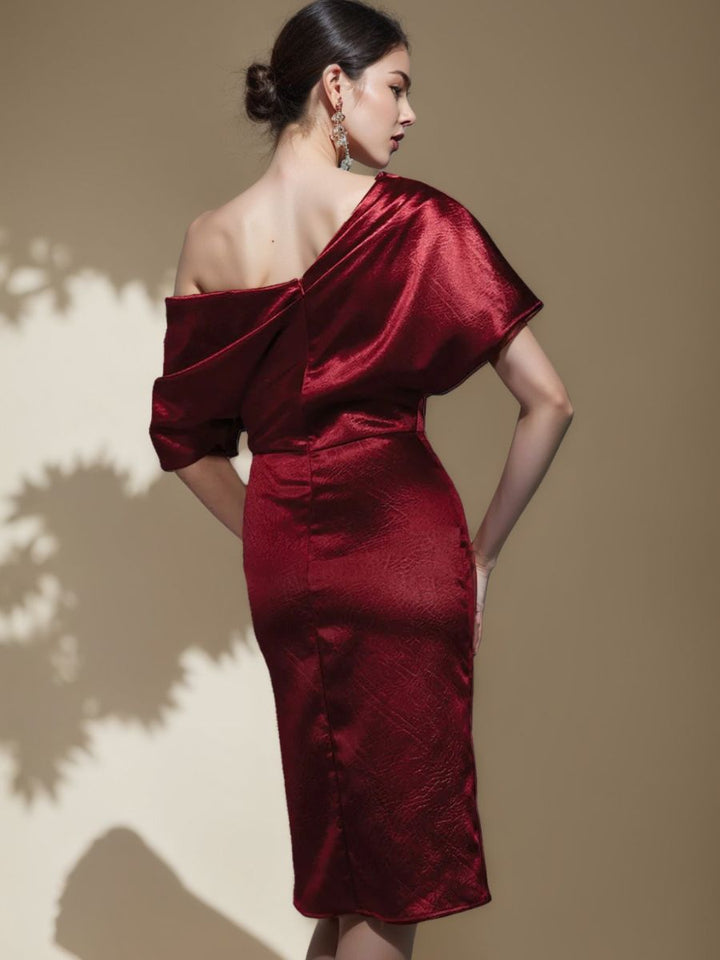 Gaine/Colonne Hors de l'Épaule Manches Courtes Longueur Genou Ruché Robes