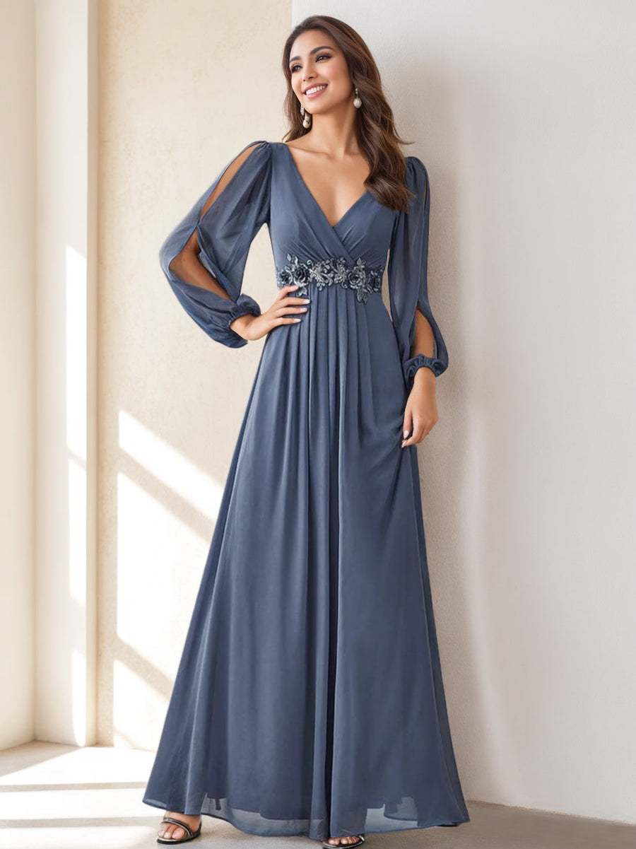 MON2311915 Robe de Mère de la Mariée Élégante en Forme de A/Princesse, Col en V, Longueur Au Sol, avec Broderie