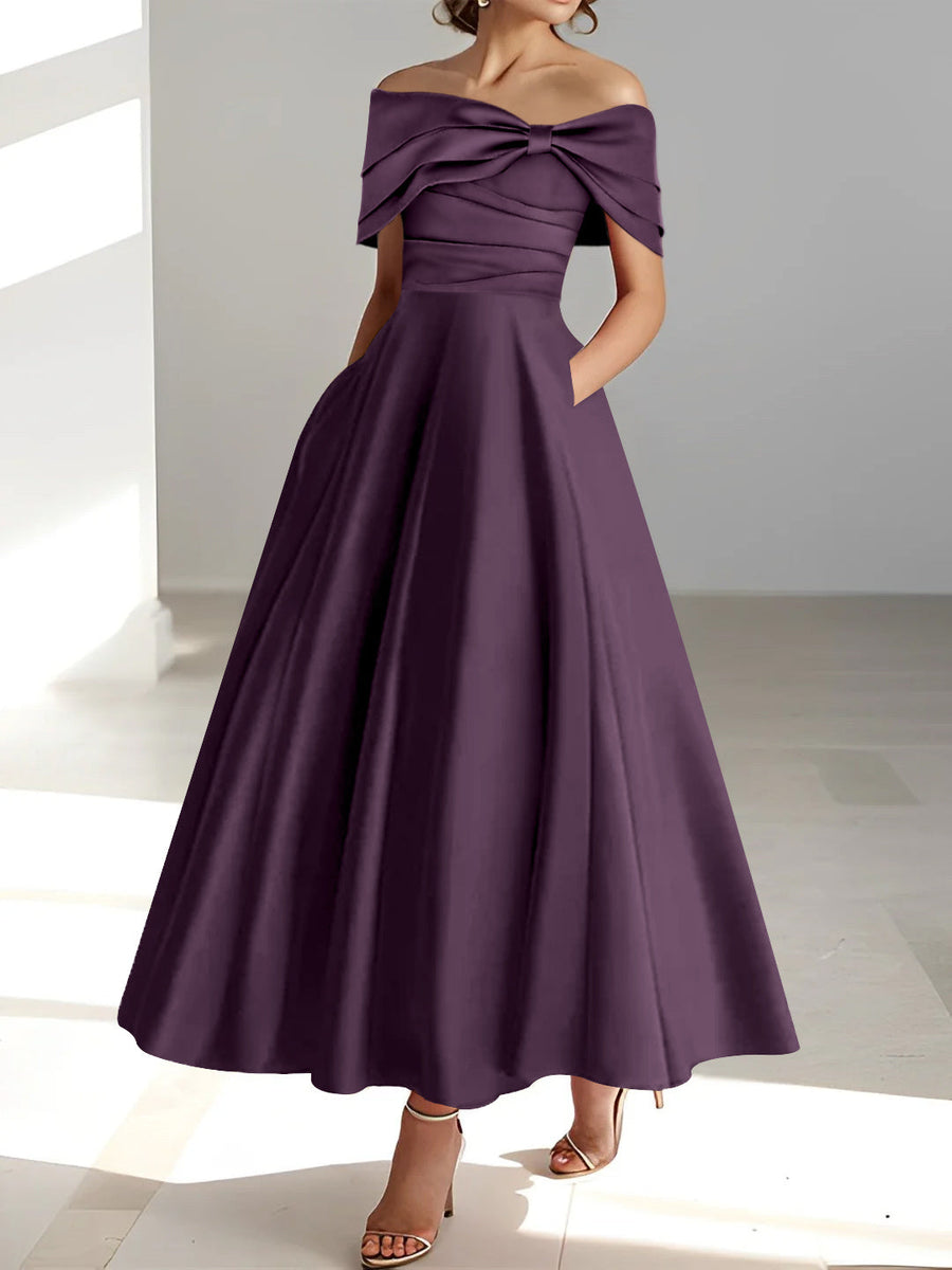 MON2311771 Robe De Mère De La Mariée Coupe A-Line/Princesse, Longueur Cheville, Sans Manches, Épaules Dénudées, Avec Volants Et Nœuds