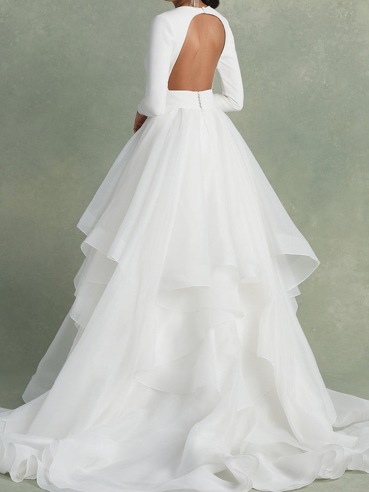 MON141258 Robe de Mariée Trapèze/Princesse à Col en V et Longueur Au Sol avec Volants