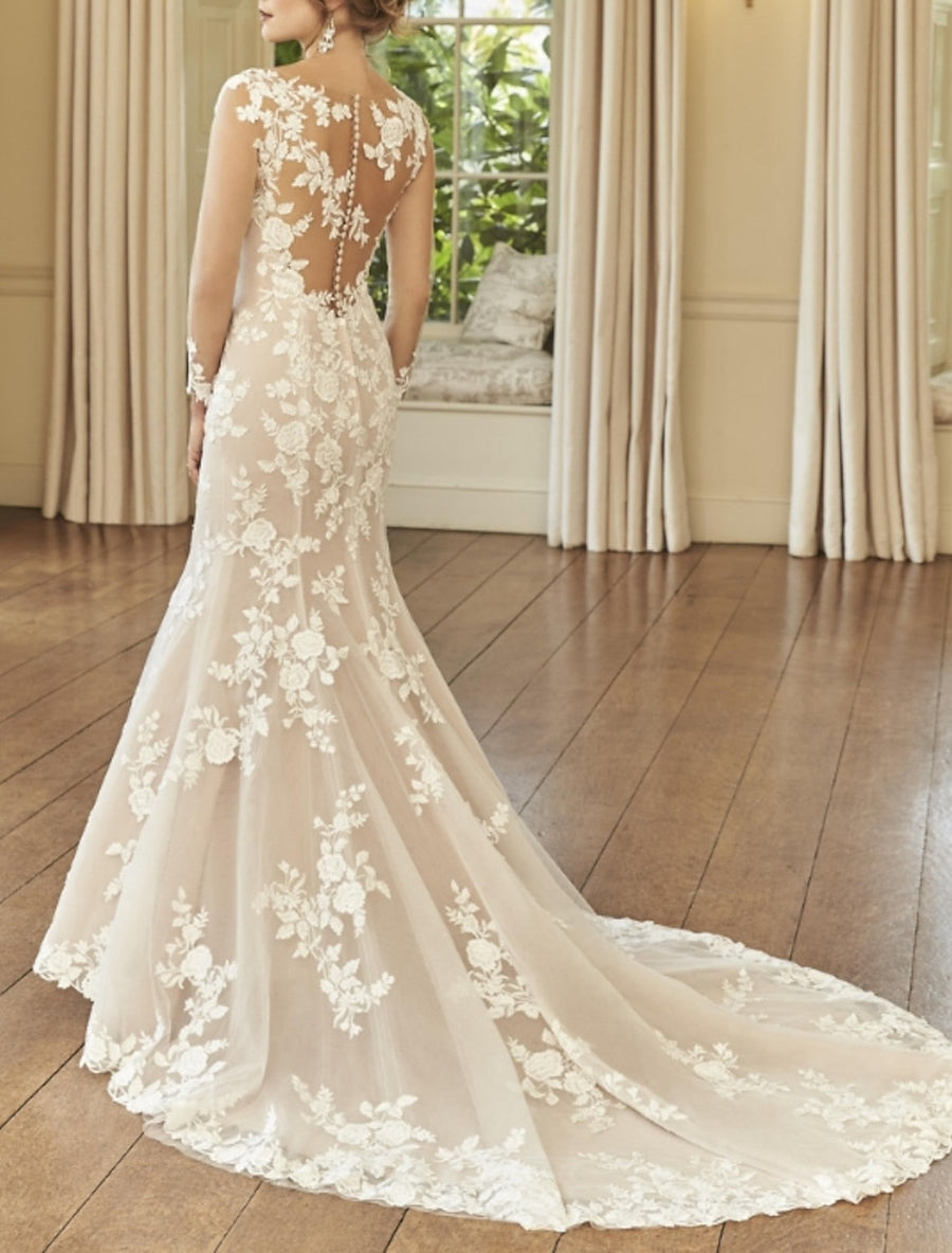 MON141151 Robe de Mariée Sirène/Trompette en Dentelle à Col en V et Longueur Au Sol
