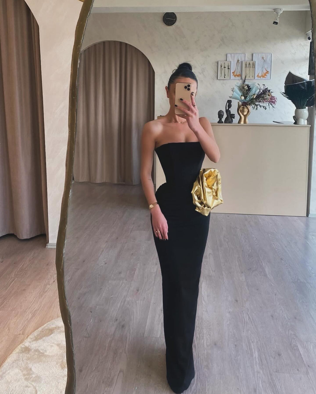 MON341571 Robe de Soirée Longue Sans Manches, Fourreau/Colonne, Sans Bretelles, Longueur Au Sol, avec Ceinture