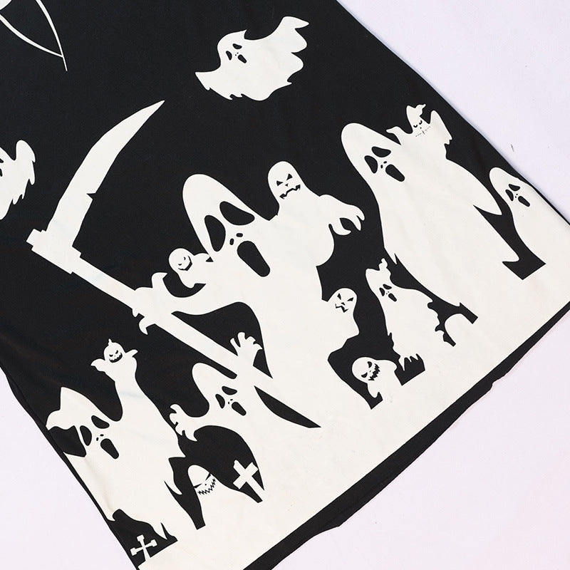 MON6041048W Costume D'Halloween à Imprimé Squelette Fantôme de la Faucheuse avec Faux Lumineuse