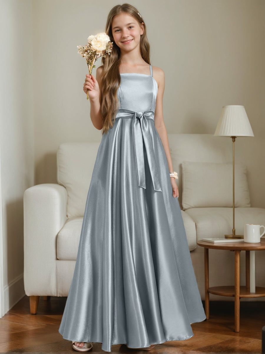 MON21110041 Robe de Demoiselle D'Honneur Junior Sans Manches à Bretelles Spaghetti de Forme A-Line/Princesse avec Ceinture