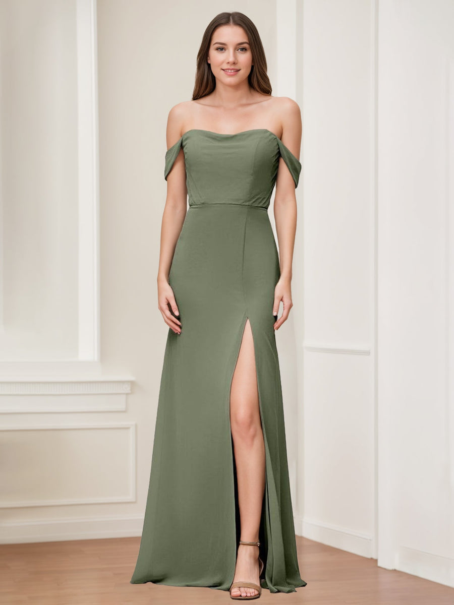 MON5411826 Ligne A/Princesse Chérie Neck Sans Manches La Longueur du Sol Long Robes de Demoiselle d'Honneur avec Côté Divisé