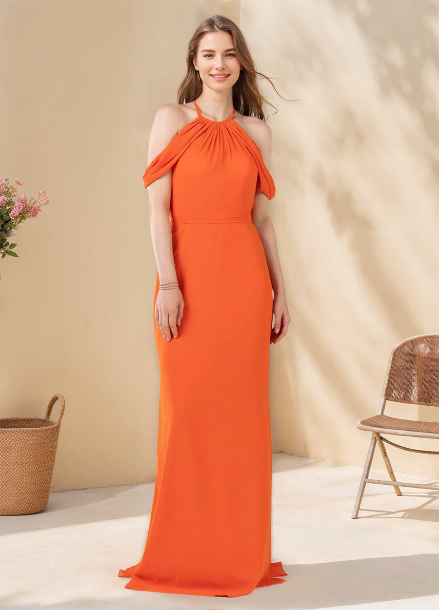 MON5412145 Ligne A/Princesse Licou Neck Sans Manches La Longueur du Sol Robes de Demoiselle d'Honneur avec Froufrous
