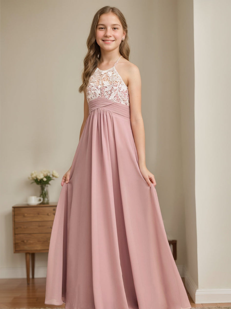 MON21110007 Robes de Demoiselle D'Honneur Junior Sans Manches à Licou A-Line/Princess avec Dentelle