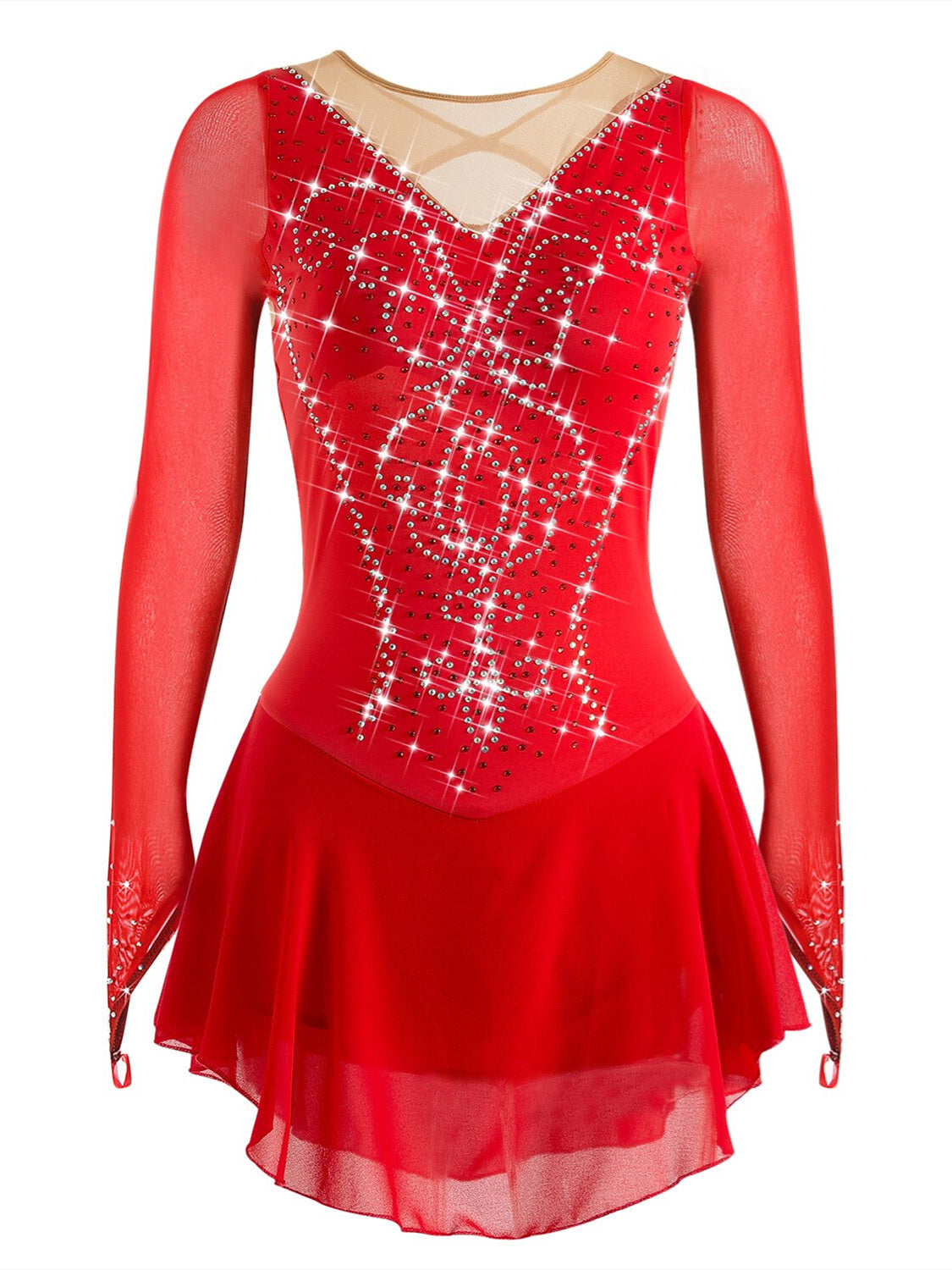 MON4041325W Robe de Patinage Artistique à Paillettes pour Femmes et Filles, Manches Longues, Robe de Danse de Patinage Sur Glace