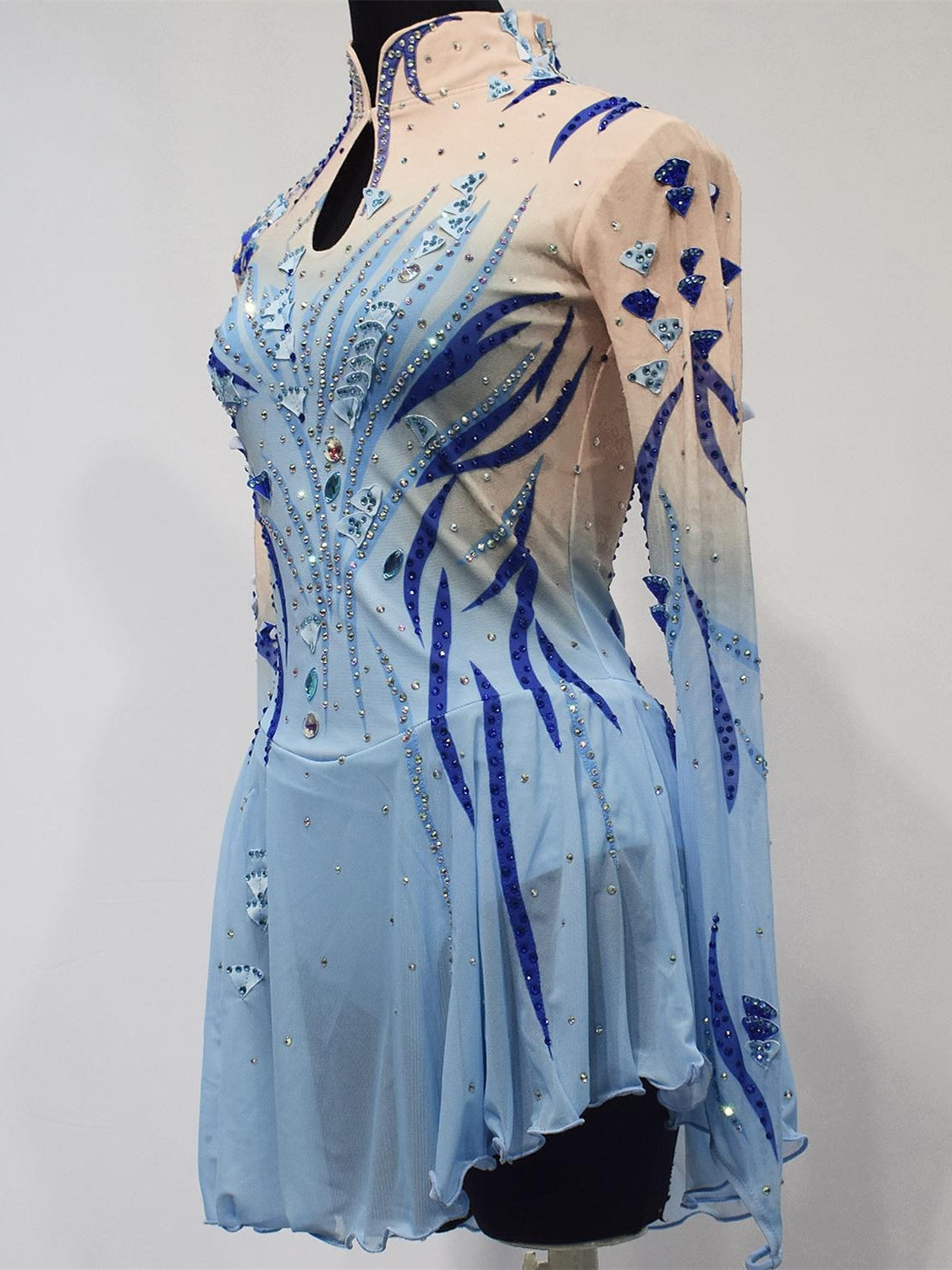 MON4041372W Robe de Patinage Artistique pour Femmes et Filles, en Maille de Glace, en Élasthanne, Haute Élasticité, Manches Longues, Robe de Patinage Sur Glace