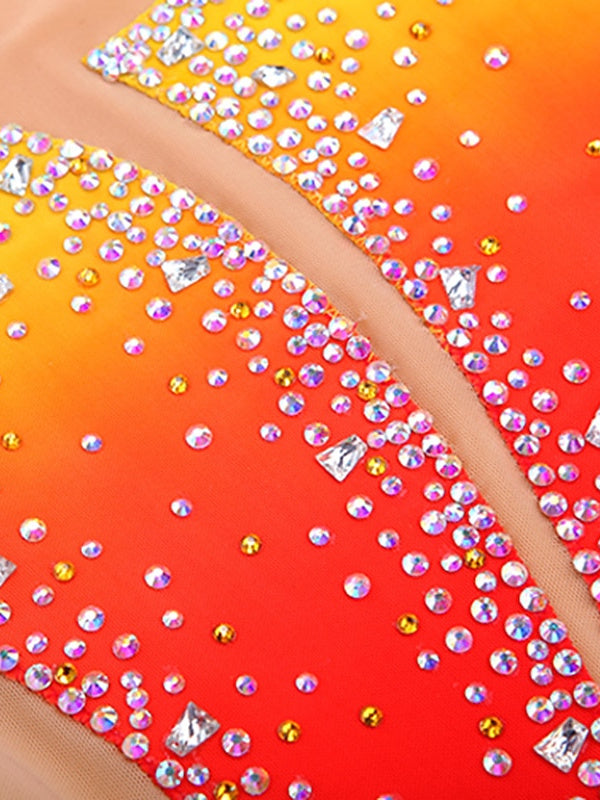 MON4041419W Robe de Patinage Artistique pour Femmes et Filles, Vêtements de Danse, Ourlet Asymétrique, Strass, Maille, Élasthanne, Manches Longues, Robe de Patinage Sur Glace