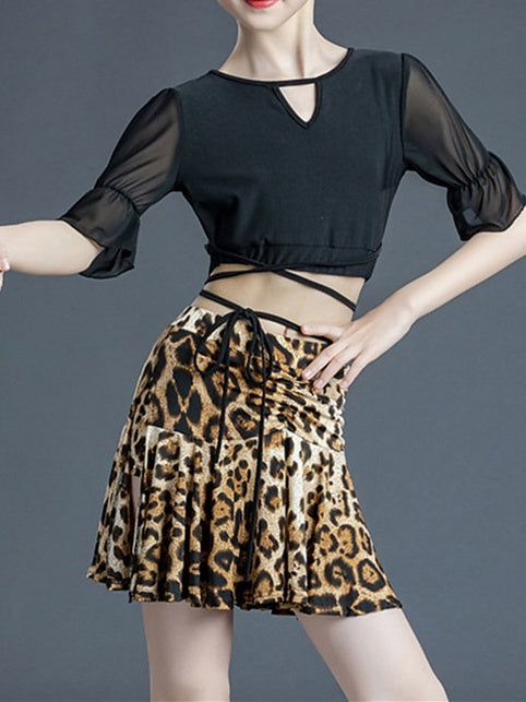 MON4041496W Jupes de Danse pour Enfants à Manches Courtes en Polyester Imprimé Léopard pour Filles