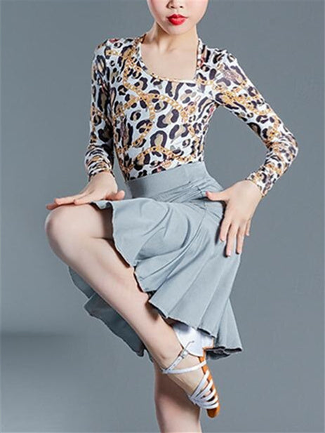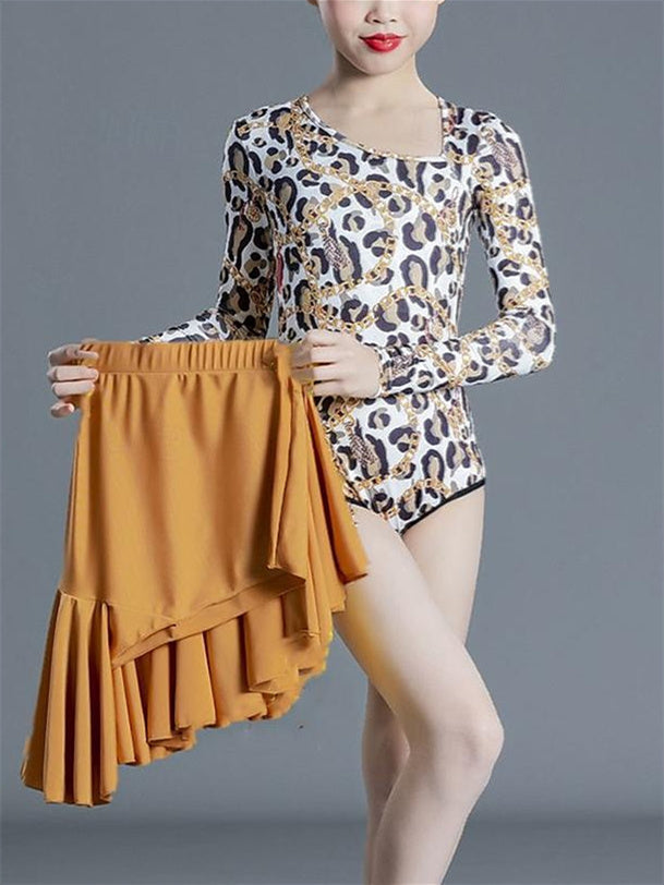 MON4041622W Jupes de Danse Latine pour Enfants, Vêtements de Danse Imprimés, Manches Longues, Performance en Élasthanne pour Filles
