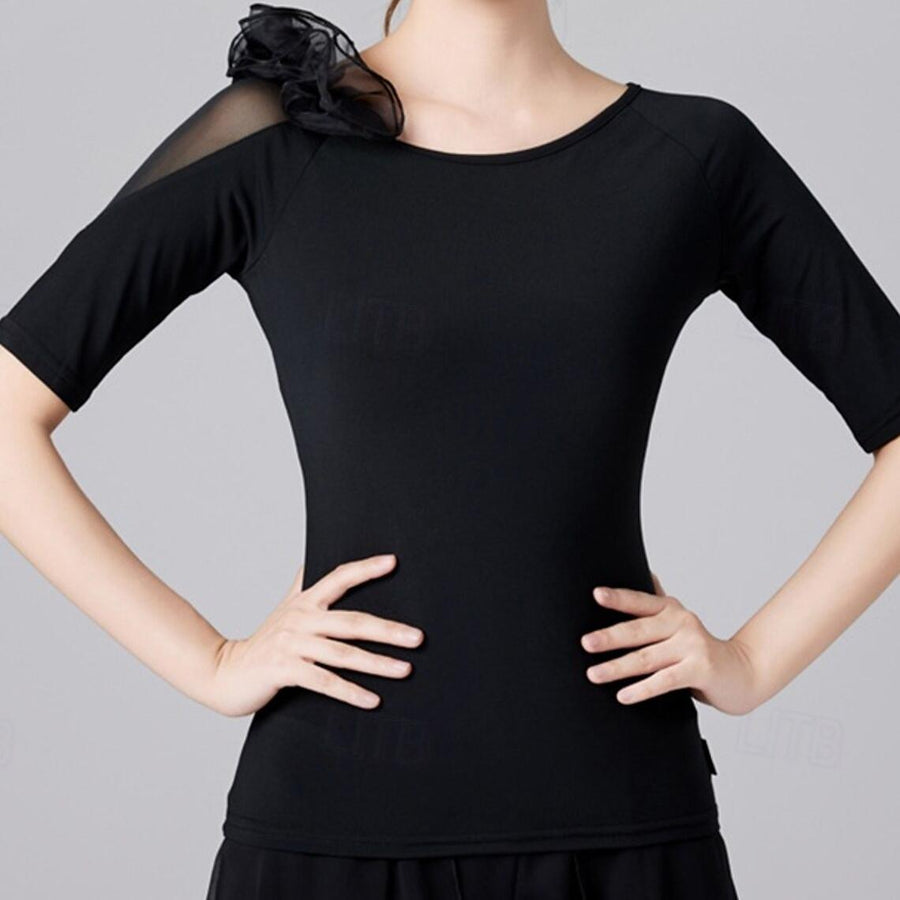 MON4041750W Danse Latine à Manches Courtes, Couleur Pure, Volants, Épissage, Entraînement de Performance pour Femmes