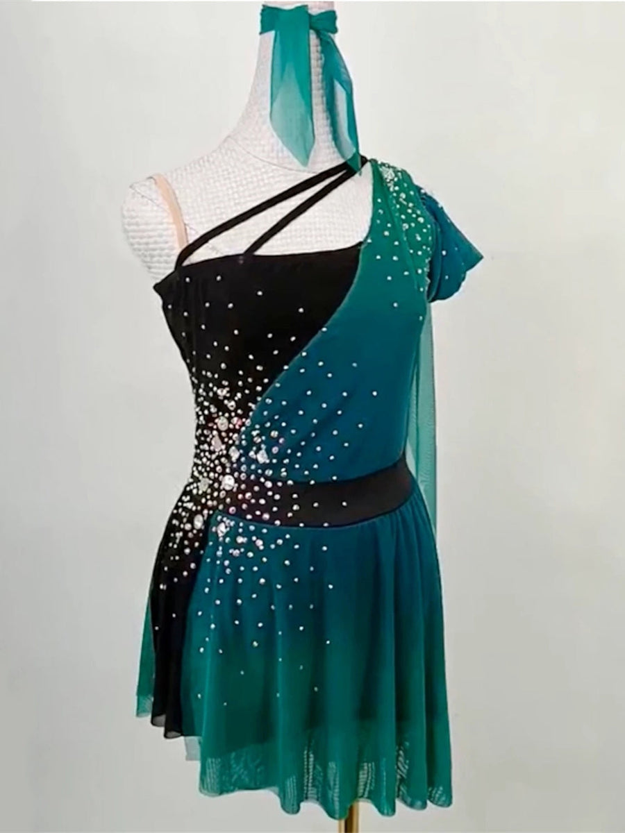 Robe de Patinage Artistique pour Femmes et Filles, Ourlet Asymétrique, Haute Élasticité, Vêtements de Danse, Robe de Patinage