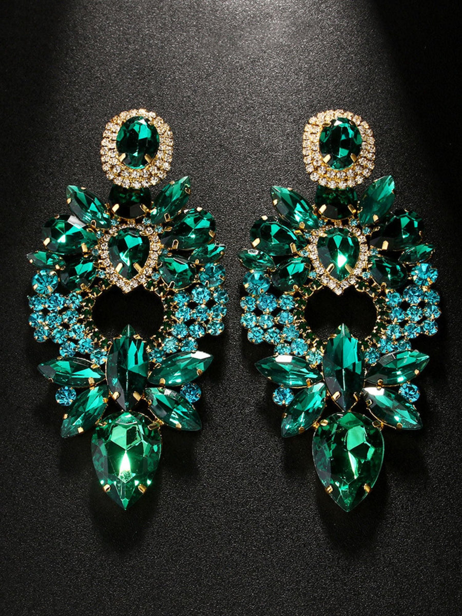 Boucles D'Oreilles Pendantes en Cristal Délicat de Haute Qualité Vert Émeraude