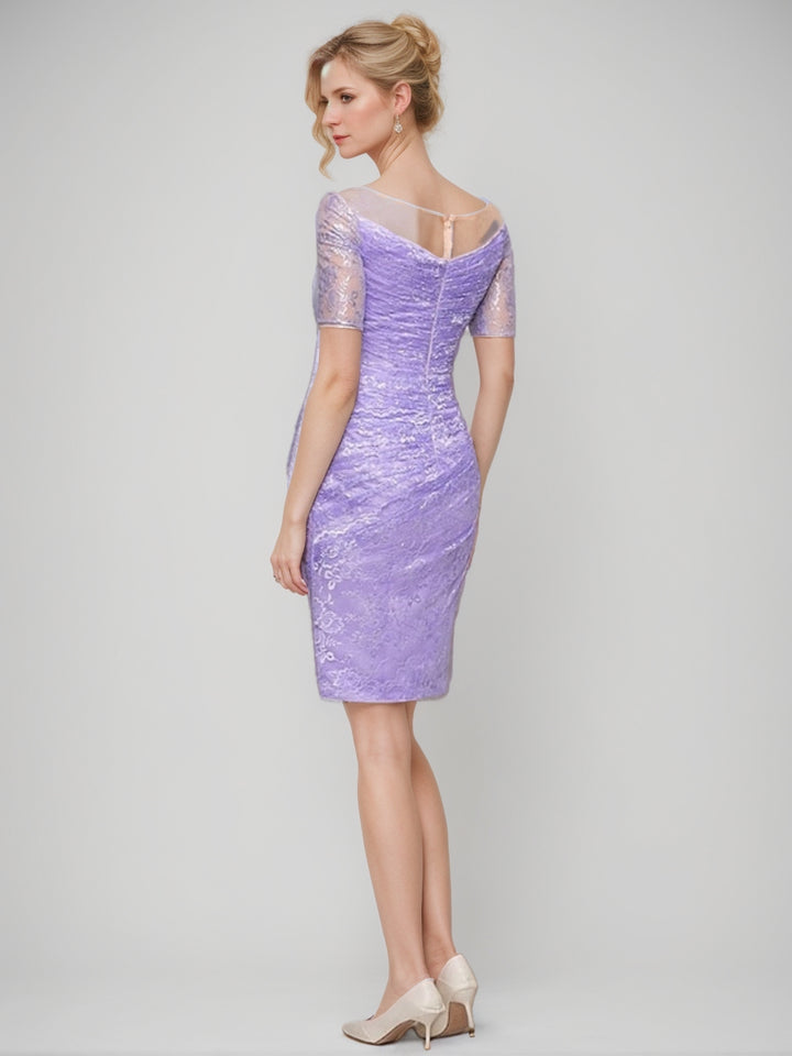MON2312071 Robe de Mère de la Mariée Fourreau/Colonne à Col Bijou, Longueur Genou, Manches Mi-Longues, avec Broderies et Appliques