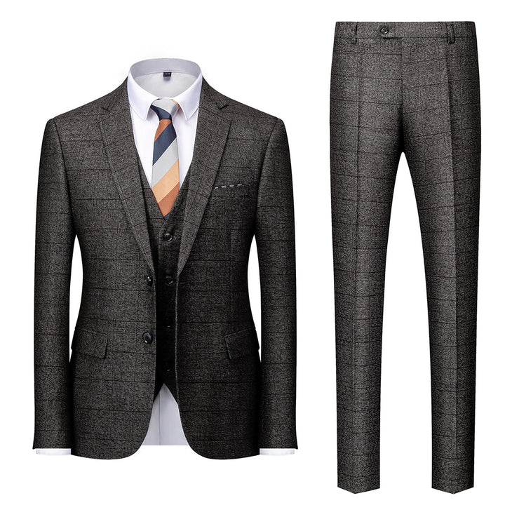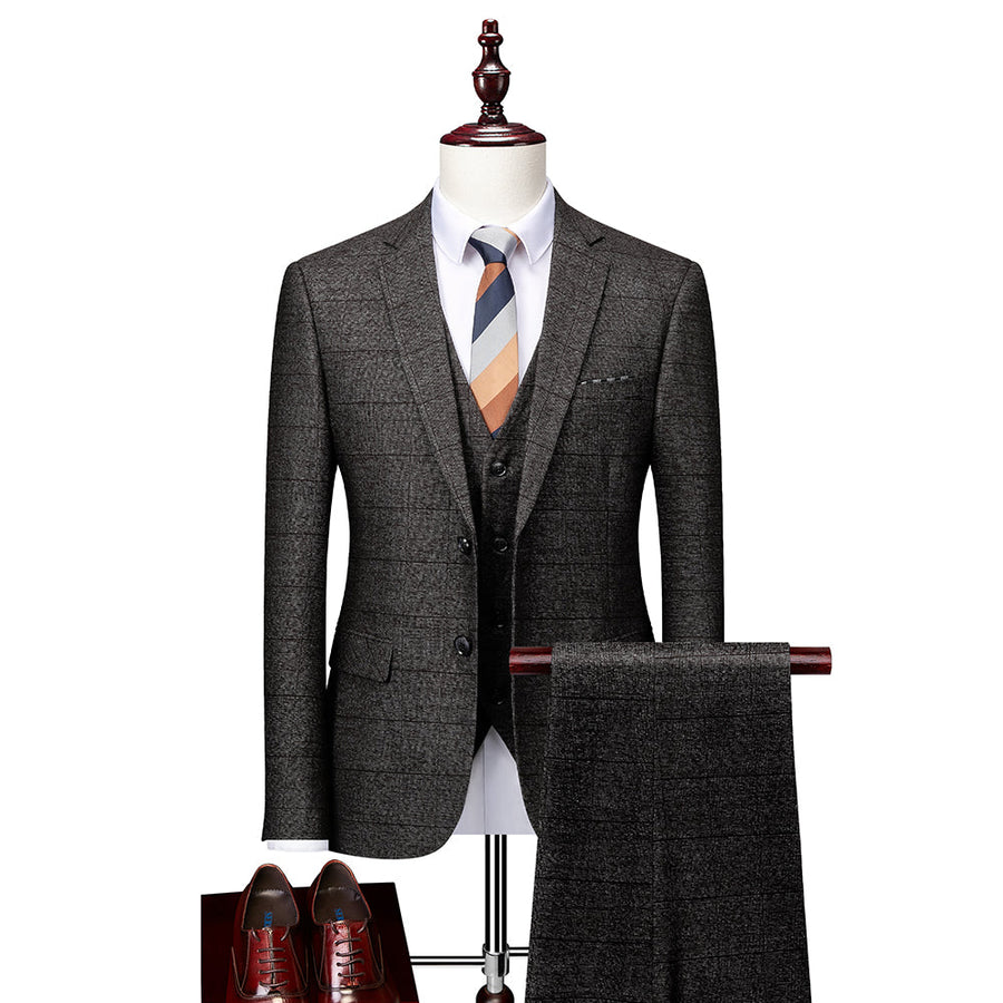 MON3120654 Costumes de Mariage à Carreaux 3 Pièces pour Hommes, Coupe Ajustée, Simple Boutonnage, Deux Boutons