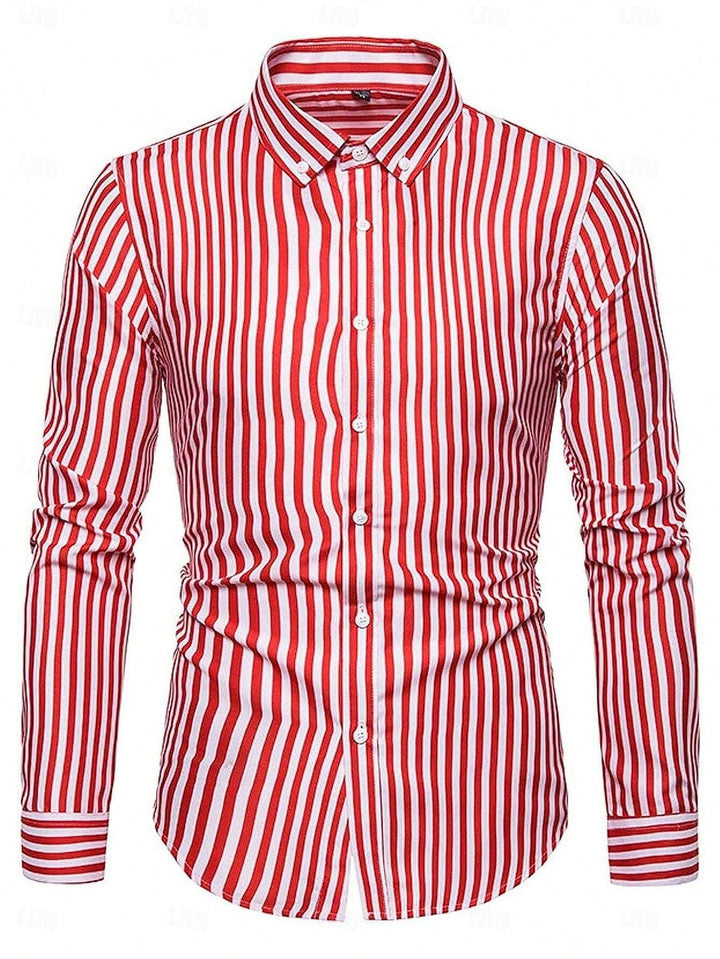 MON3120923 Chemise Décontractée à Manches Longues en Coton Mélangé à Rayures pour Hommes