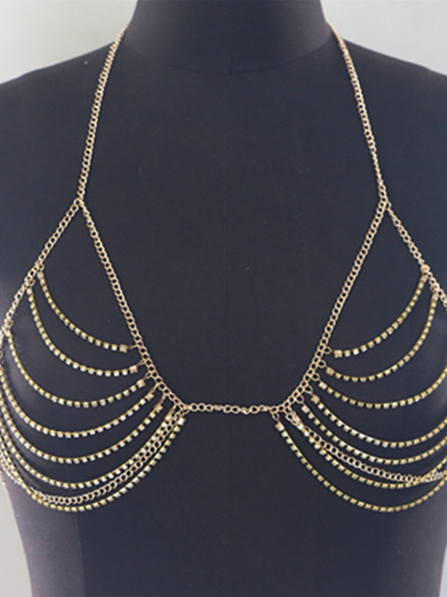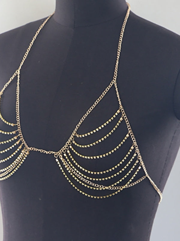 MON4041695W Accessoires de Danse Soutien-Gorge Strass Paillettes Chaîne en Métal Femmes Performance Formation Sans Manches Haute Alliage