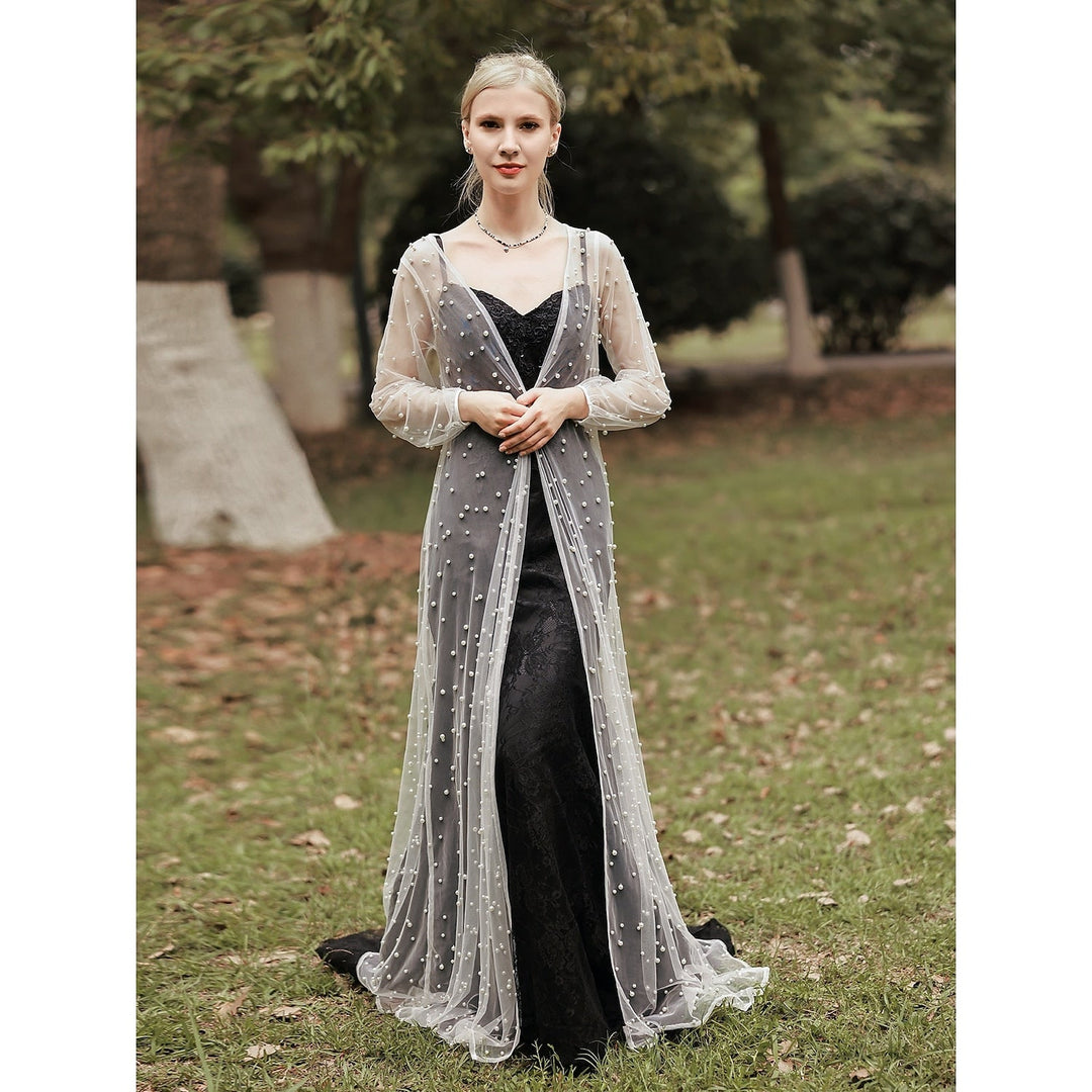 MON741137 Enveloppes de Mariage Élégantes à Manches Longues en Tulle Illusion avec Couleur Pure