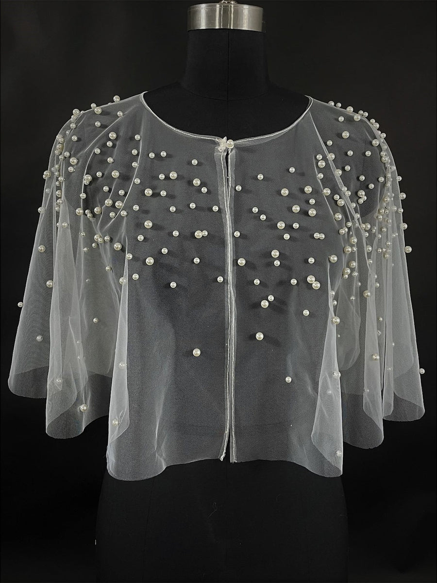 MON741148 Châle/Enveloppe en Tulle Sans Manches à Paillettes pour Femme avec Protection Solaire et Perles D'Imitation